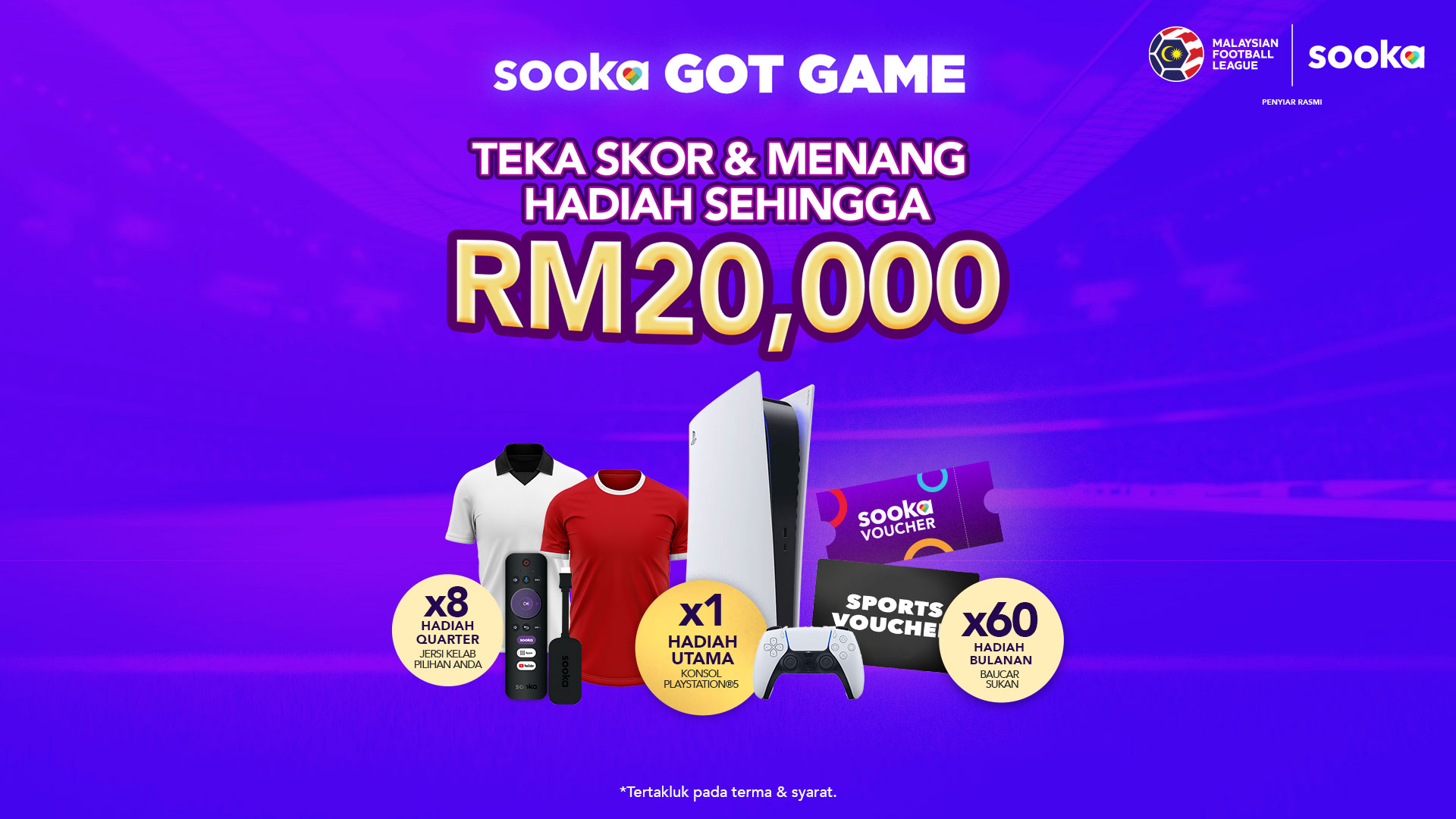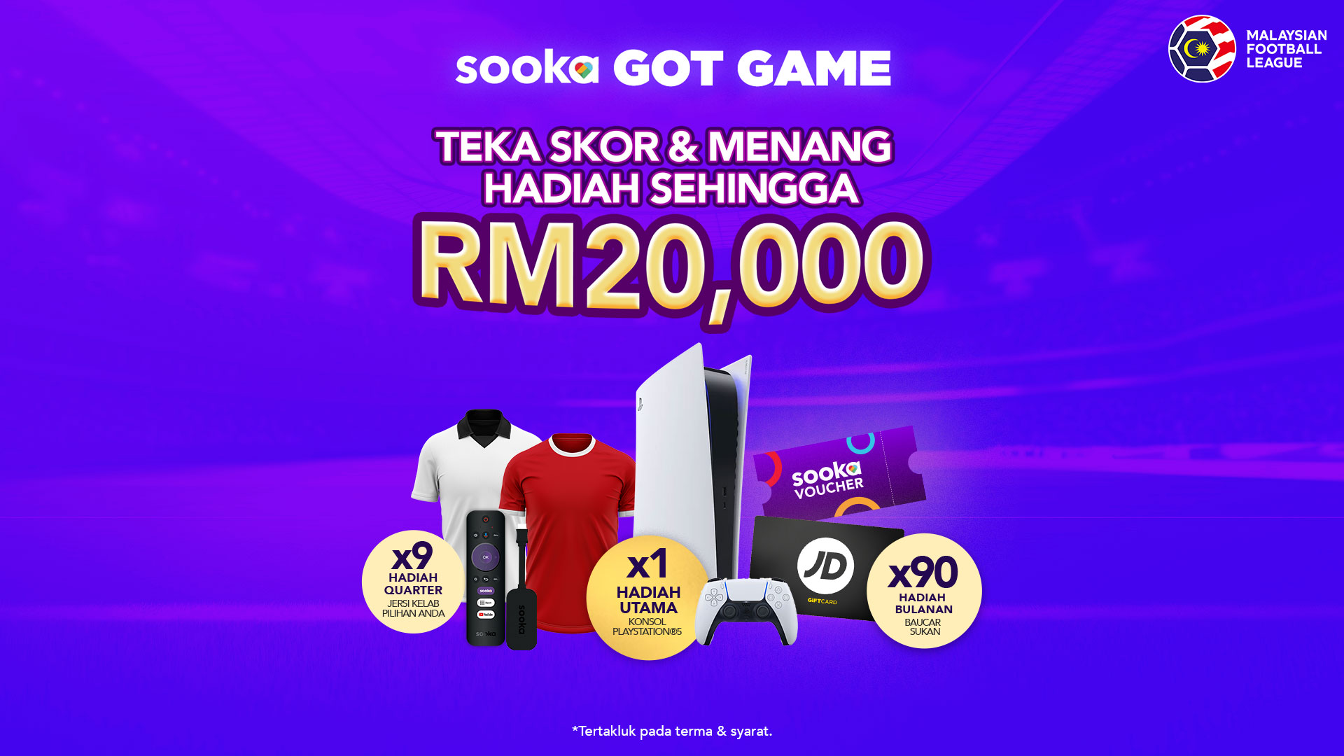 Hadiah bulanan: Voucher sooka Premium 1 bulan bernilai RM 50 dan Voucher JD Sport bernilai RM 100